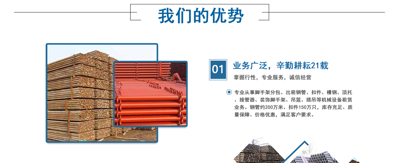 安徽海洋建筑工程機械租賃有限公司、淮南佳輝建筑工程有限公司是由淮南興勝鋼管租賃公司起家的,從事專業(yè)腳手架資質(zhì)分包、鋼管、扣件、槽鋼、頂托、接管器、裝飾腳手架搭設(shè)、吊籃、搭吊等機械設(shè)備的租賃業(yè)務(wù)。公司成立于1999年,憑借著專業(yè)水準和成熟技術(shù),在業(yè)內(nèi)迅速崛起并不斷發(fā)展創(chuàng)新。